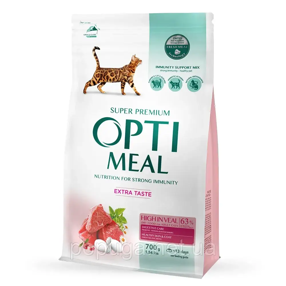Сухий корм для дорослих котів з високим вмістом телятини Optimeal